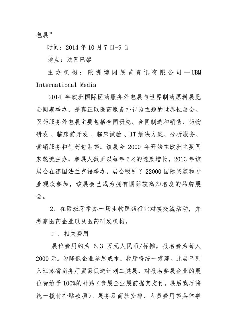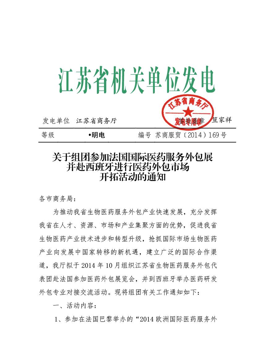 關(guān)于組團(tuán)參加法國(guó)國(guó)際醫(yī)藥服務(wù)外包展并赴西班牙進(jìn)行醫(yī)藥外包市場(chǎng)開(kāi)拓活動(dòng)的通知